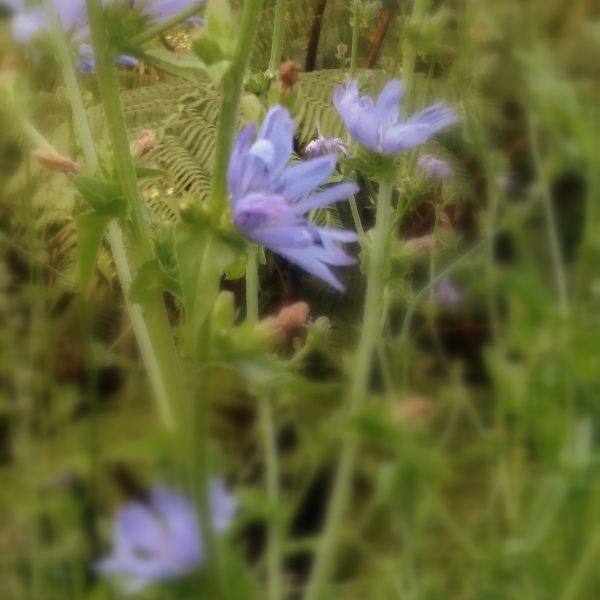 I started to put chicory seeds into soil to stop weeds last year. The outcome is outstanding! I often pick its leaves for cooking. It tastes a bit bitter. I guess “bitter taste is healthy” I’ve got all sort of recipes from Youtube and been eating its leaves since last year. This year (2017), I let them grow without picking. I am amazed to see the flower come out as shows as the photo.