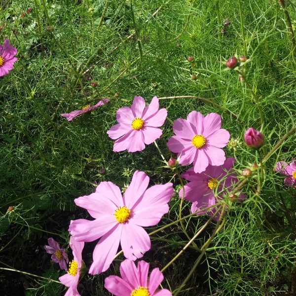 I am pretty sure they are ‘Cosmos’, an annual easily grown from seeds. Have had it myself and will have it again 🙂